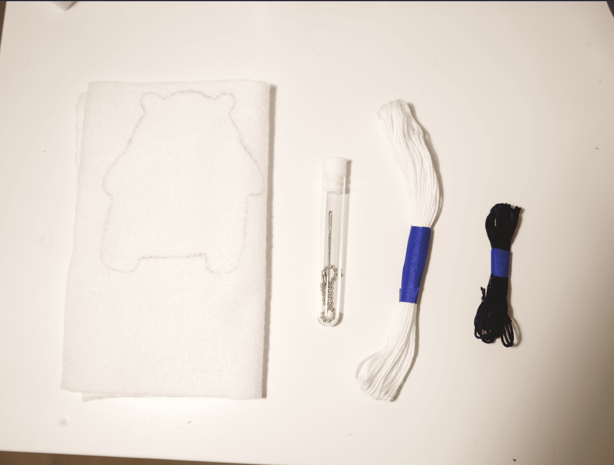 An innovative, beginner-friendly, and hands-on sewing kit that lets you create your own polar bear keychain by following the step-by-step instructions included.